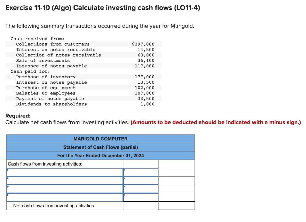 Solved Exercise 1110 (Algo) Calculate investing cash flows
