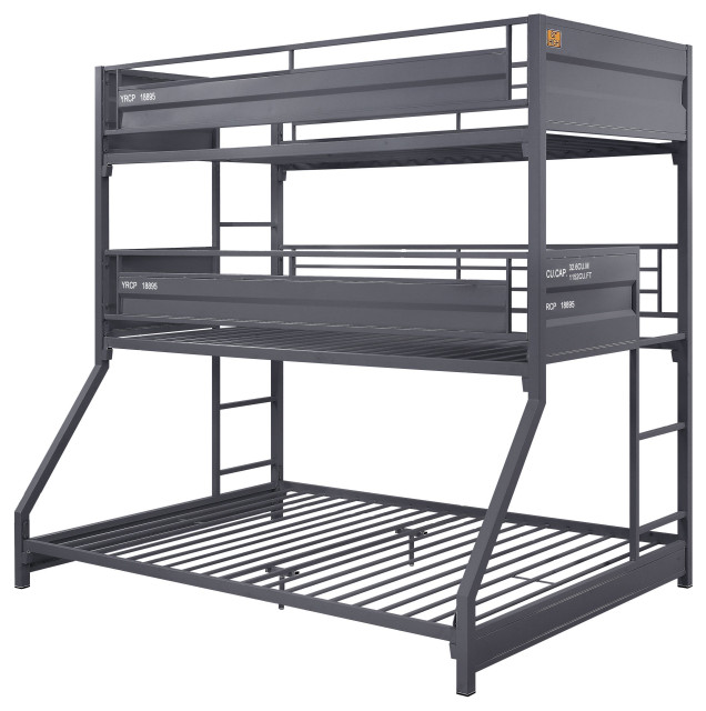 Cargo Twin/Twin/Full Triple Bunk Bed, Gunmetal Finish Industrial