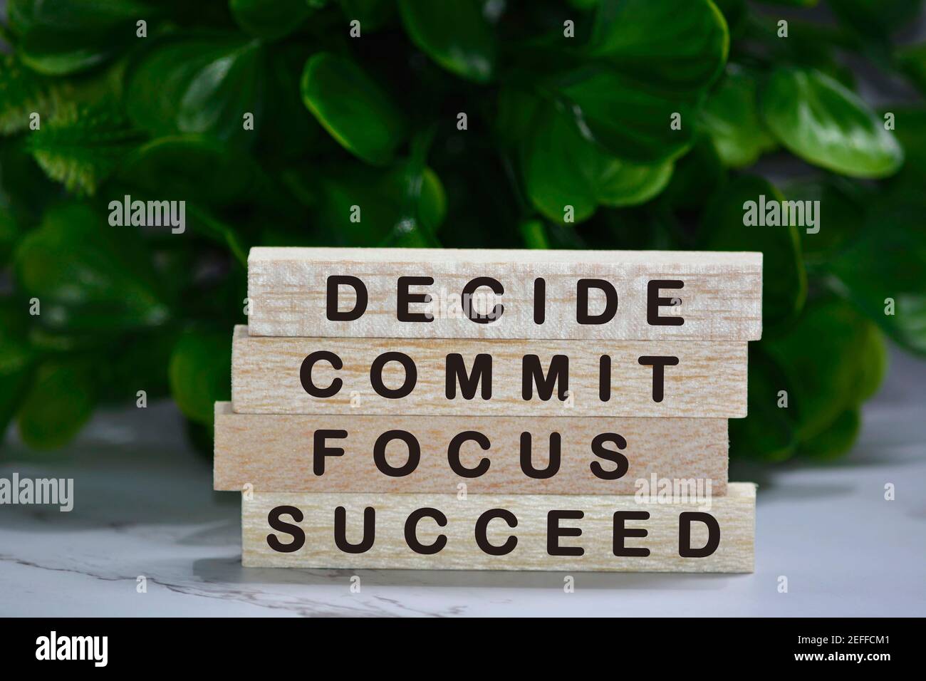 Inspirational words on wooden blocks with green background Stock Photo