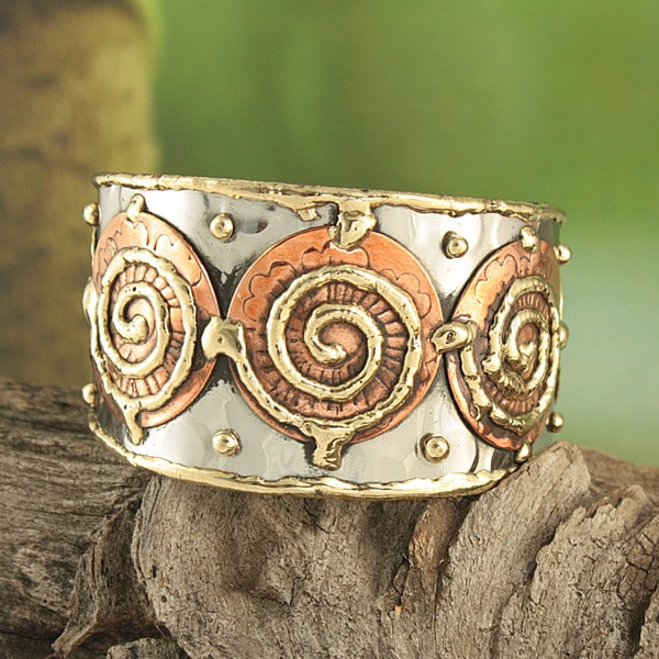 Shop Handmade Hammered Brass and Copper Three Swirls Cuff Bracelet