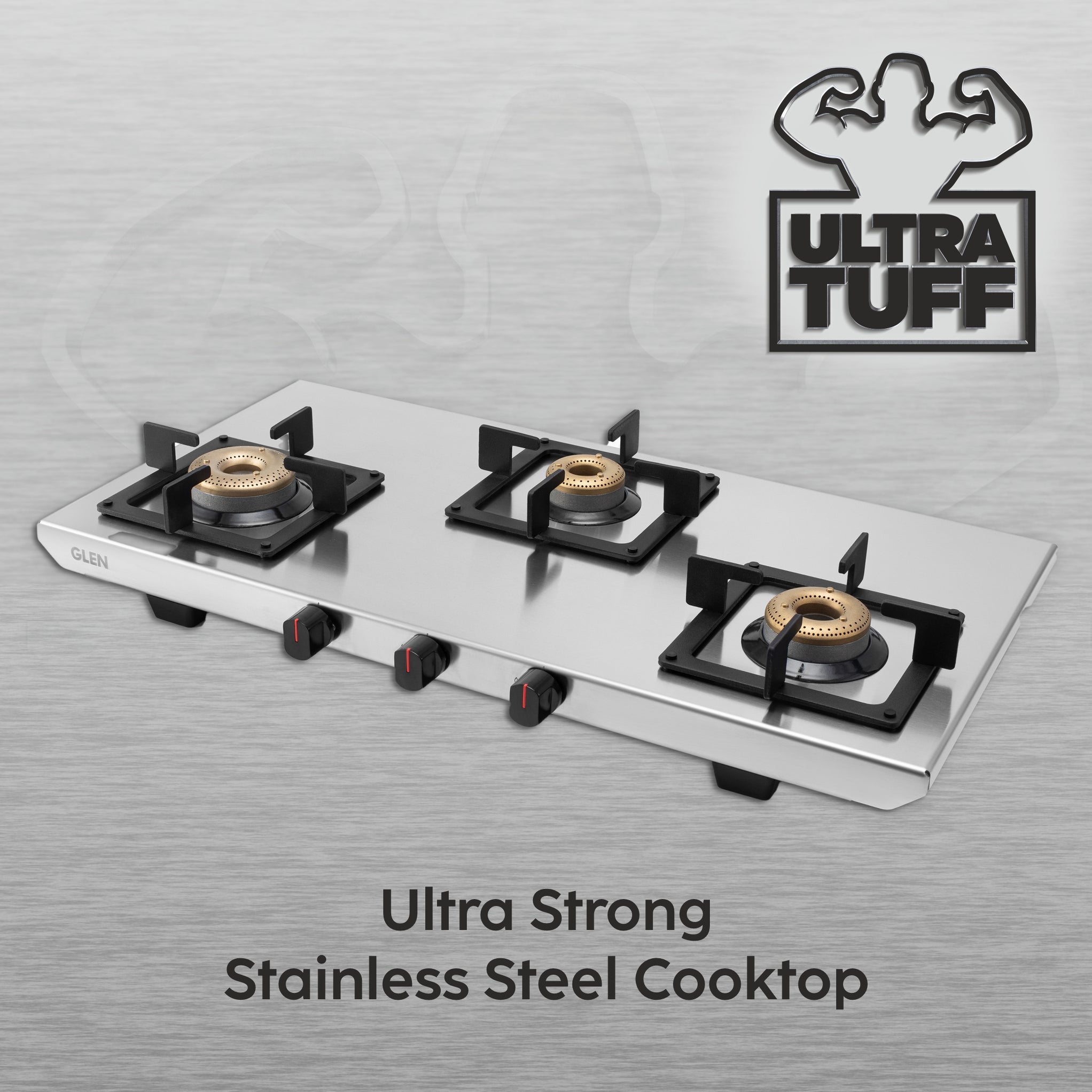 Buy Gas Stove 3 Burner Stainless Steel Brass Burner Online Glen — Glen Appliances Pvt. Ltd