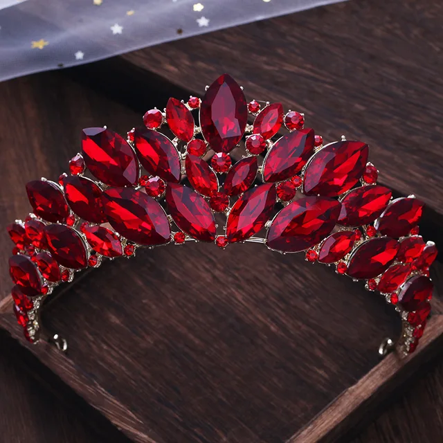 Red Crystal Tiara Crowns Hair Jewelry Rhinestone Headpiece Wedding Pageant Bridal Princess