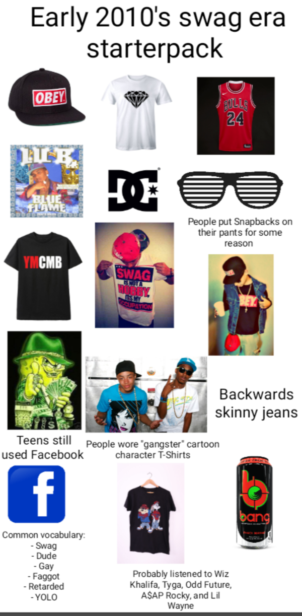 The swag era in the early 2010's starterpack /r/starterpacks Starter Packs Know Your Meme Swag Era Music In the late 2000s and early 2010s, a cultural phenomenon known as swag emerged, fueled by the beats of new boyz's you're a jerk and its catchy dance moves. Share your videos with friends, family, and the world In the late 2000s and early 2010s, a cultural phenomenon known as swag emerged, fueled by the beats of new boyz's you're. Swag Era Music.