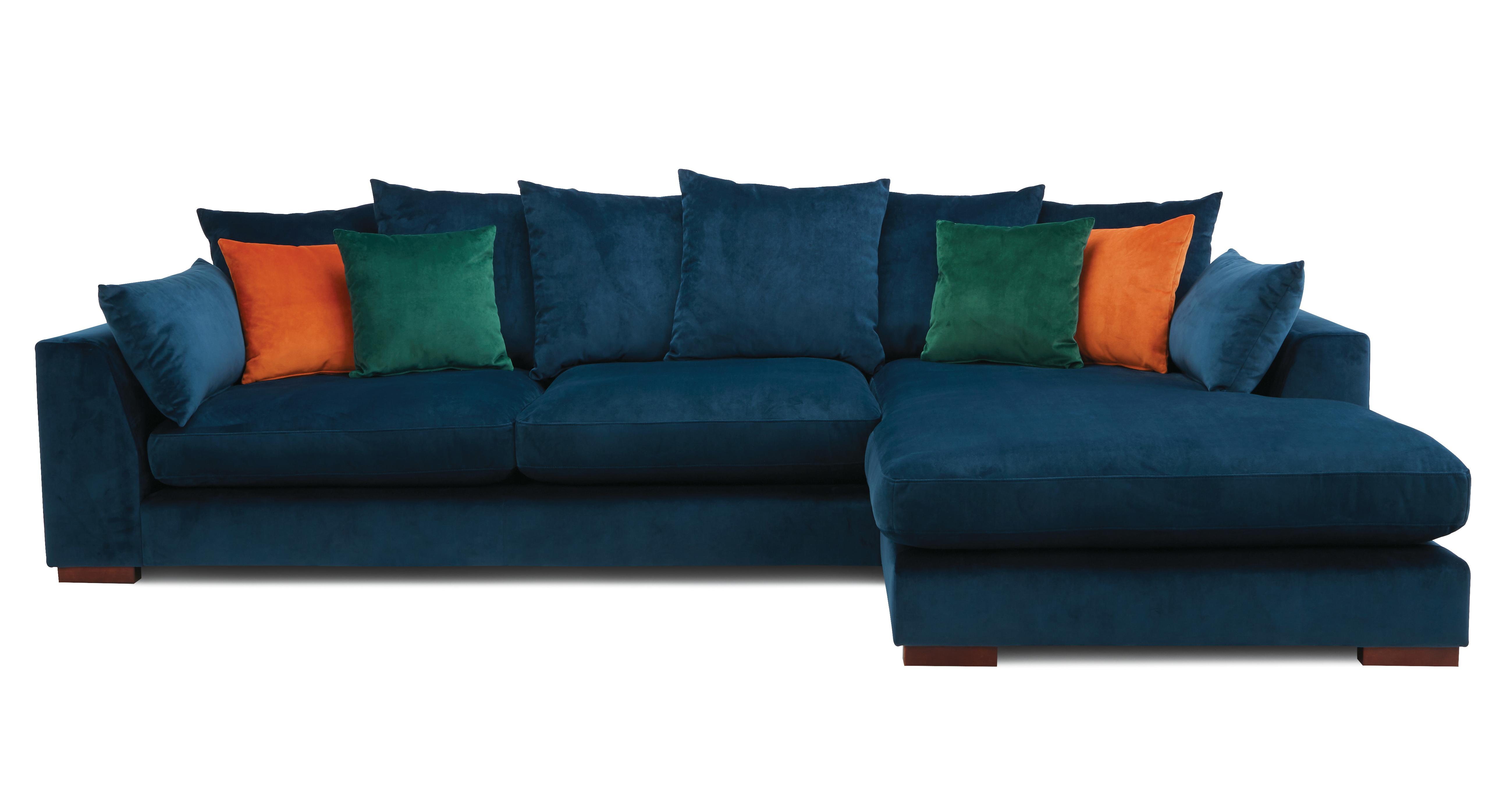 Plush Velvet Pillow Back Right Hand Facing Large Chaise End Sofa DFS
