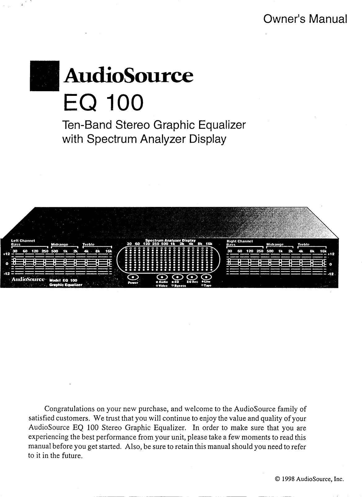 Audiosource Stereo Equalizer Eq 100 Users Manual