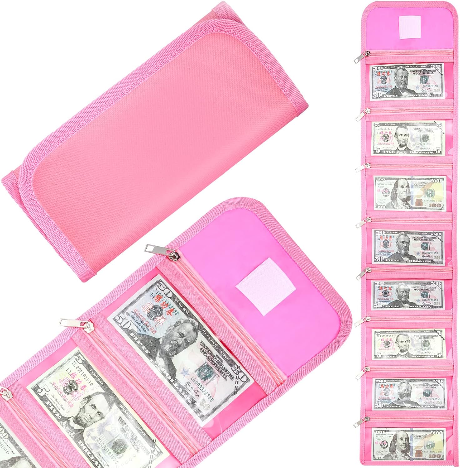 Money Wallet Organizer for Cash with 8 Zippered Slots Multipack Money