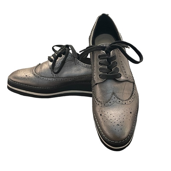 Zara Shoes Zara Woman Metallic Pewter Platform Oxford Shoes Size 7