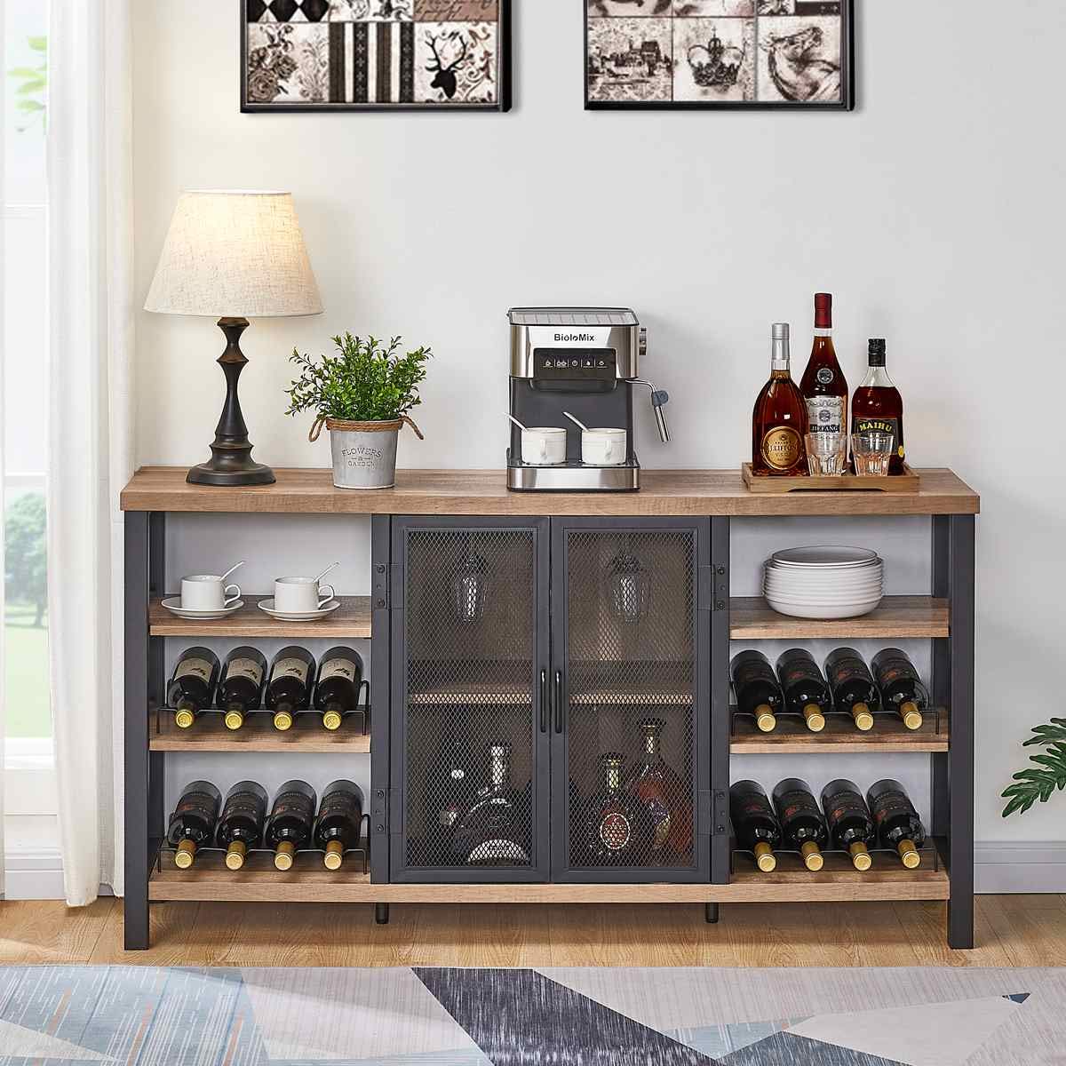 FATORRI Industrial Wine Bar for Liquor and Glasses, Farmhouse