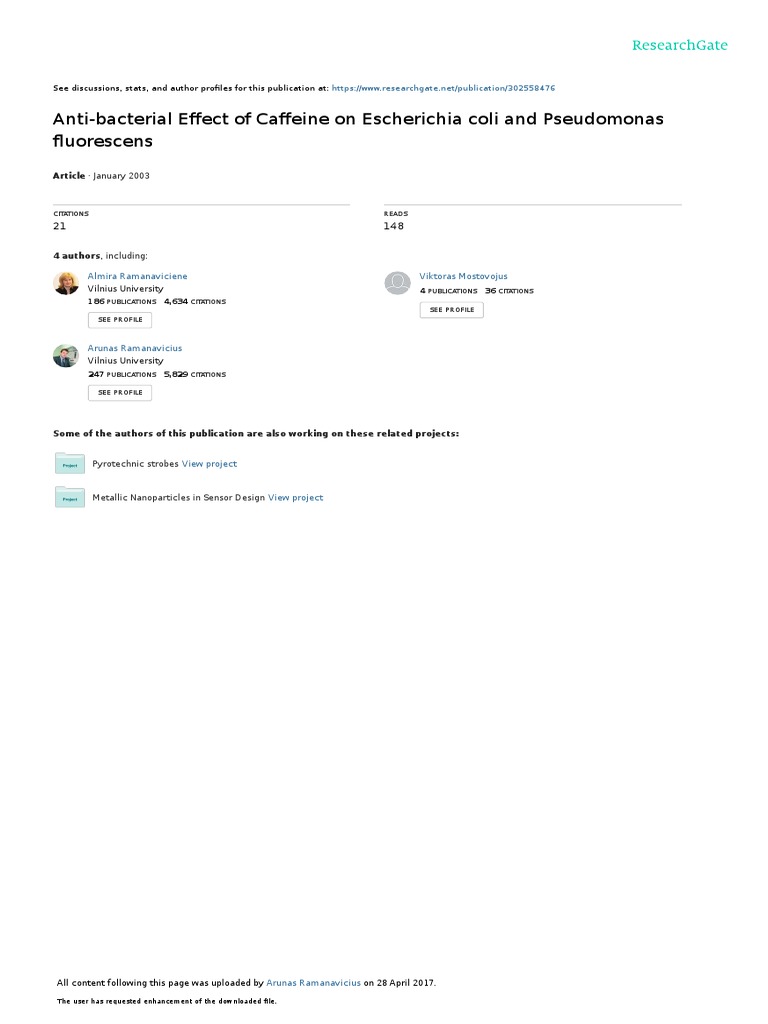 AntiBacterial Effect of Caffeine On Escherichia Coli PDF Growth Medium Bacteria