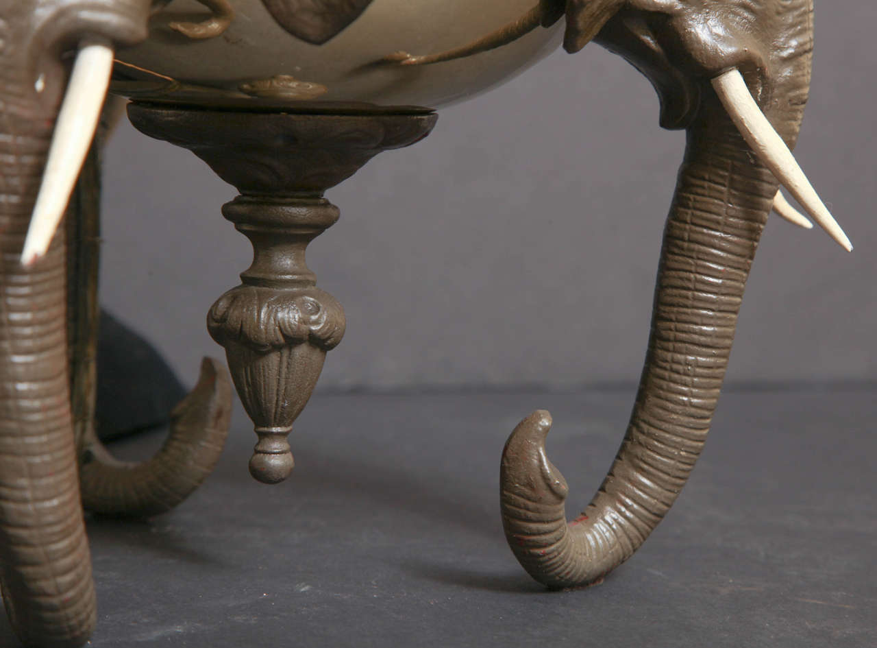 Brass and Polychrome Spelter, Elephant Motif Oil Lamp For Sale at