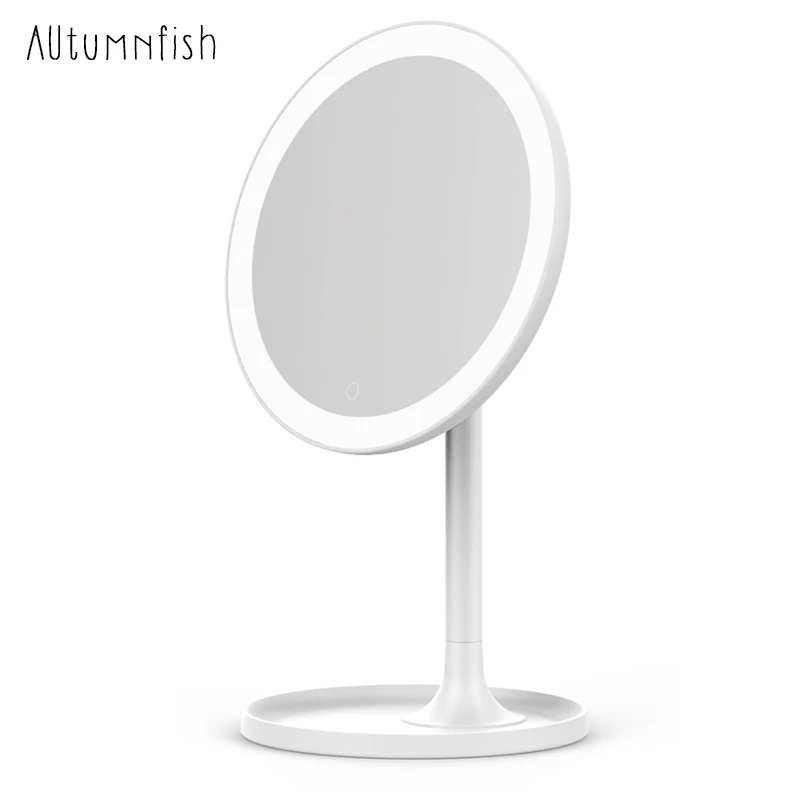 Led Makeup Mirror White Simple Compact Base With Storage Function High