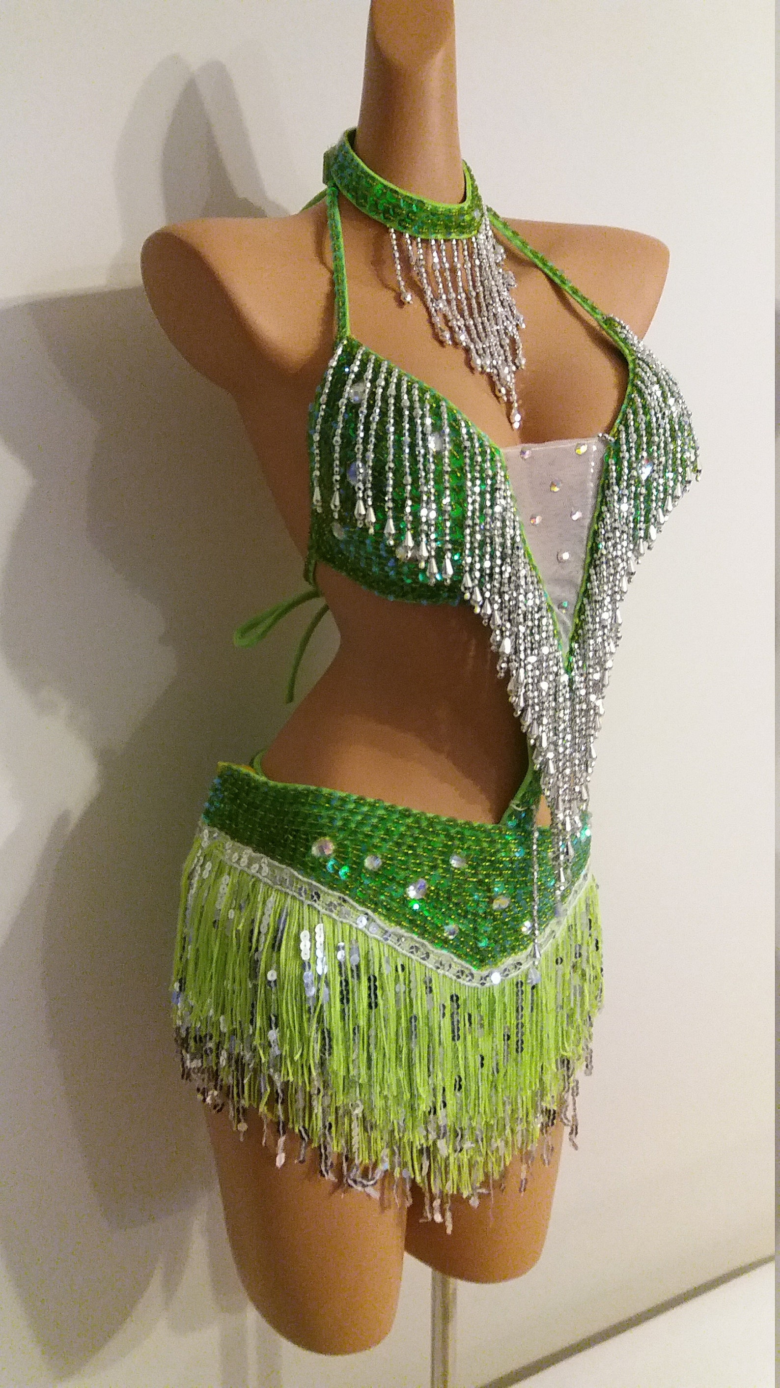 LIME GREEN Sequin Fringe DressSamba Costumes Carnival Show Etsy