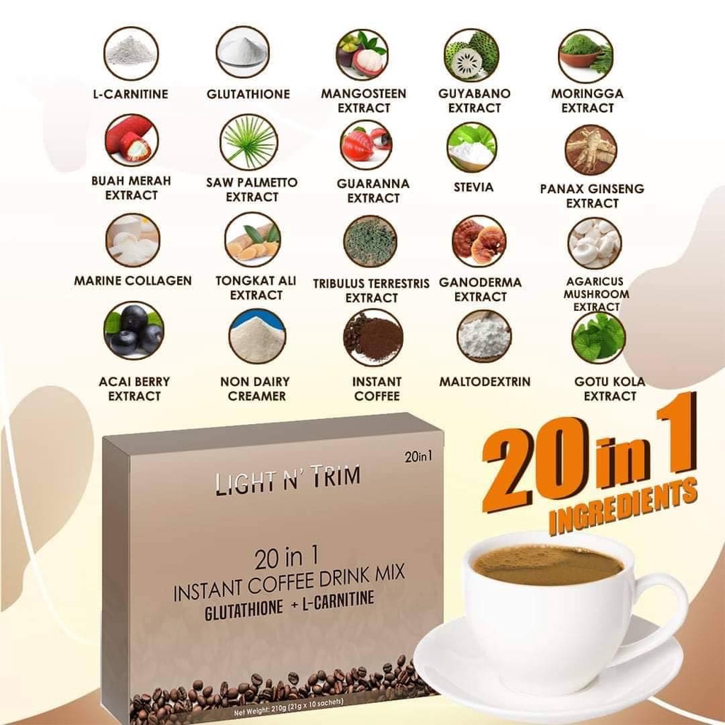 Light n' Trim 20in1 Instant Coffee Drink Mix (Glutathione + L