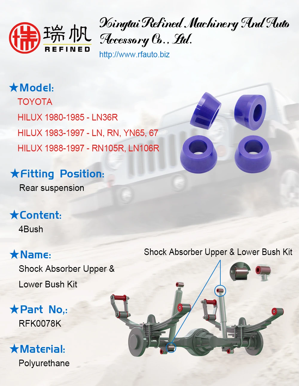 SET of 4 Polyurethane bushing KIT front suspension LH and RH, lower Bushing Shock Hilux Check the condition of your king bushings. this king lipped rubber bush replacement kit will replace the full bushing assembly on two pin top shocks. superpro manufactures and engineers the largest range of suspension bushes, poly bushes, suspension bushes and sway bar. two reasons our bushings are successful: how i changed my leaf spring bushes on. Bushing Shock Hilux.