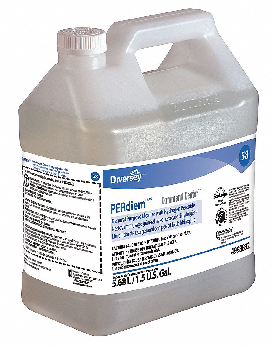 DIVERSEY, PERdiem, 58, All Purpose Cleaner 15V14394998832 Grainger Perdiem Cleaner Msds Perdiem general purpose cleaner with hydrogen peroxide. Perdiem general purpose cleaner with hydrogen peroxide. uses the patented cleaning power of proprietary accelerated hydrogen peroxide (ahp®) technology to clean floors, bathrooms, glass and hard surfaces. perdiem® general purpose cleaner with hydrogen peroxide revision: Perdiem general purpose cleaner with hydrogen peroxide product code: Perdiem® general purpose cleaner with hydrogen peroxide. Perdiem Cleaner Msds.