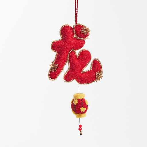Hand Felted and Gold Beaded Red Chinese New Year Lantern Ornament