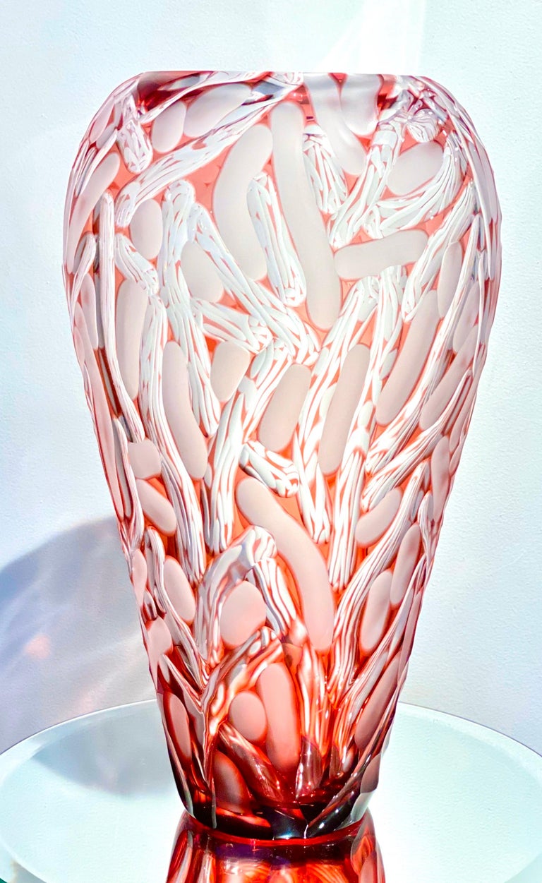 Monumental Czech Bohemian Contemporary Carved Art Glass Vase by, Lucas