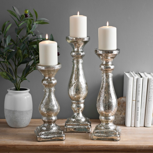 Set of 3 Silver Mercury Glass Pillar Candle Holders 7" 8.5" 10 Silver Candle Holders Wholesale Sparks gift wholesalers stock a range of wholesale candle holders in a wide variety of designs, materials and colours. Our metal candle holders come in range of finishes, from shiny to hammered metal, and are available in gold, silver, and copper, so that you. Candles4less candle holders are perfect to add a decorative touch to any event. Browse hill interiors'. Silver Candle Holders Wholesale.