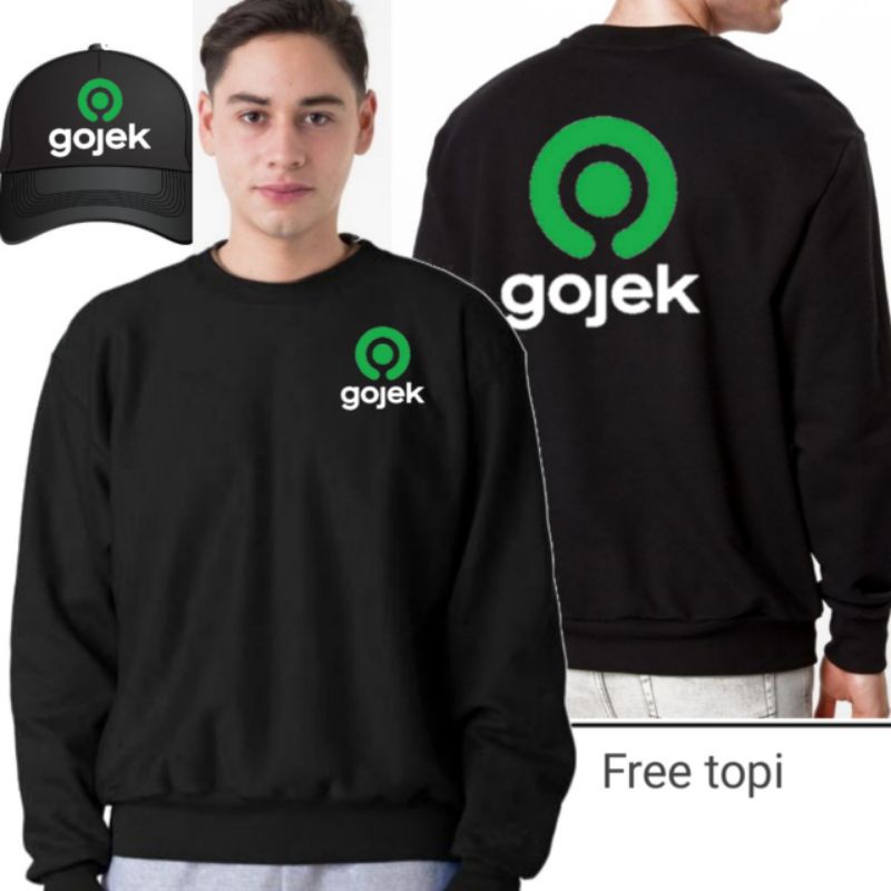 Jual Hoodie basic gojek logo baru bahan cotton fleece tebal + topi