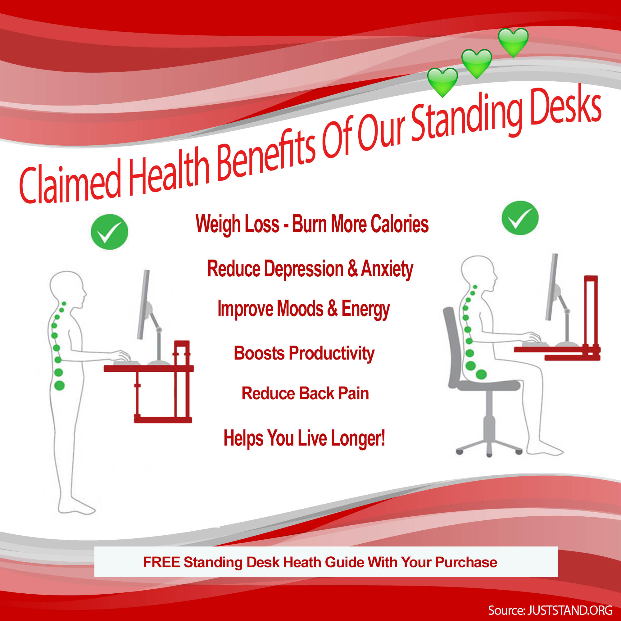 Why Work Standing Up? Infographic HealthPostures Are There Benefits To Standing At Work Learn how working in a standing position can cause health issues such as fatigue, pain, and varicose veins. Find out how to improve workplace design, job design, and work practices. Reducing or interrupting sitting by standing up or moving around can improve your blood circulation, metabolism, heart health, mental health and lifespan. Find out how to use a standing desk. Are There Benefits To Standing At Work.