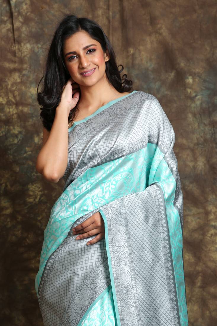 Buy Two Tone Green Silk Embroidered Saree Online Like A Diva Sea Green Color Silk Saree Explore the elegance of our sea green satin silk handloom banarasi saree. From vibrant patterns to unique designs has it all. Saree palace curates an opulent array of sea green sarees fashioned with patch border, zari work, stone work, resham work, prints and hand. Expertly woven with intricate designs, this saree is perfect for. Sari), blouse and women's jewelry, with. Sea Green Color Silk Saree.