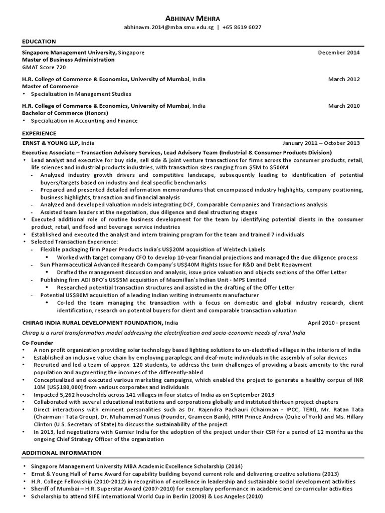 Abhinav Mehra CV Monitor Deloitte PDF Business