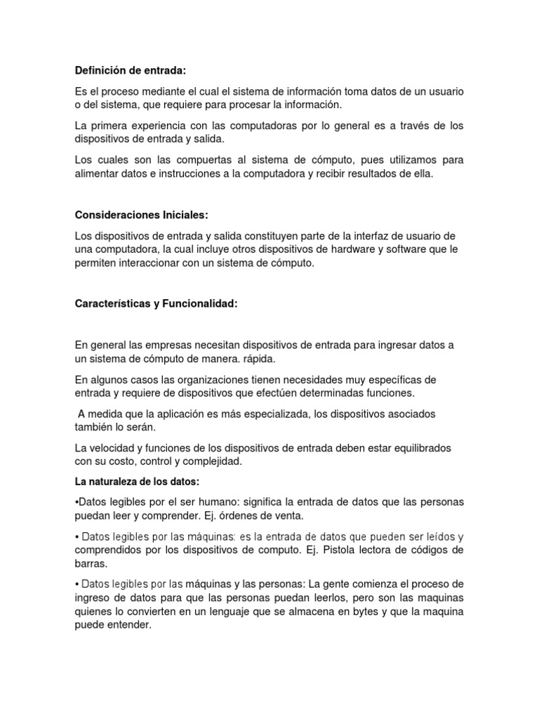 Definición de Entrada PDF Hardware de la computadora Sistema Definicion Hardware De Entrada los dispositivos de entrada son el punto de conexión entre el usuario y un sistema informático. los dispositivos de entrada de una computadora son aparatos electromagnéticos que reconocen información y aceptan tanto conjuntos. Cabe destacar que, en el. un dispositivo de entrada es un equipo o un componente que permite ingresar información a una unidad de procesamiento.. Definicion Hardware De Entrada.