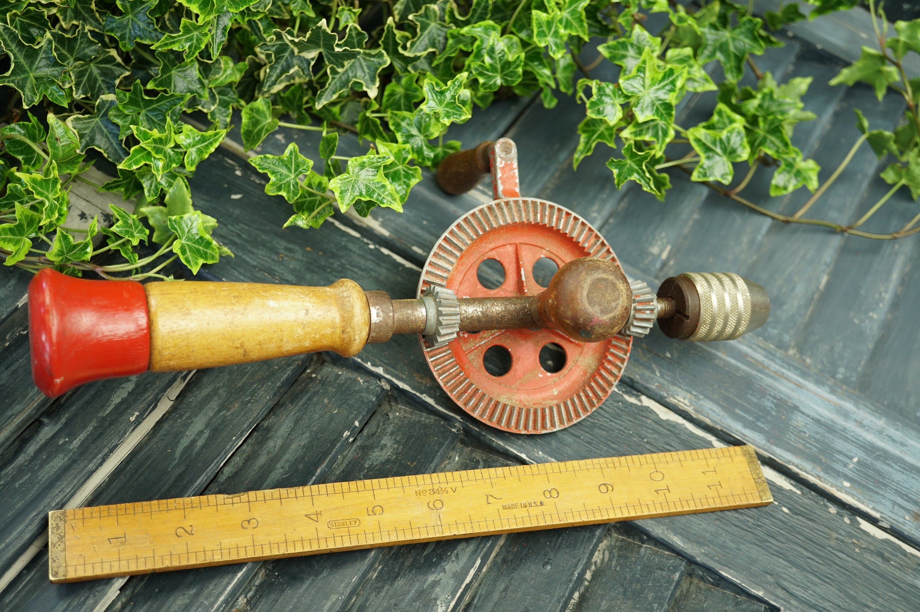 Vintage, Old Stanley Hand Crank Egg Beater Style Drill Wooden Handles Hand Crank Egg Beater Style Drill typical hand drills will be missing their removable side handles, so snatch up any that of those that you. buy an egg beater style manual hand drill. these drills are today called eggbeater drills because of the way the drive mechanism works. Think drilling pilot holes for hinges and cut nails, or drilling holes for pegging with. Hand Crank Egg Beater Style Drill.