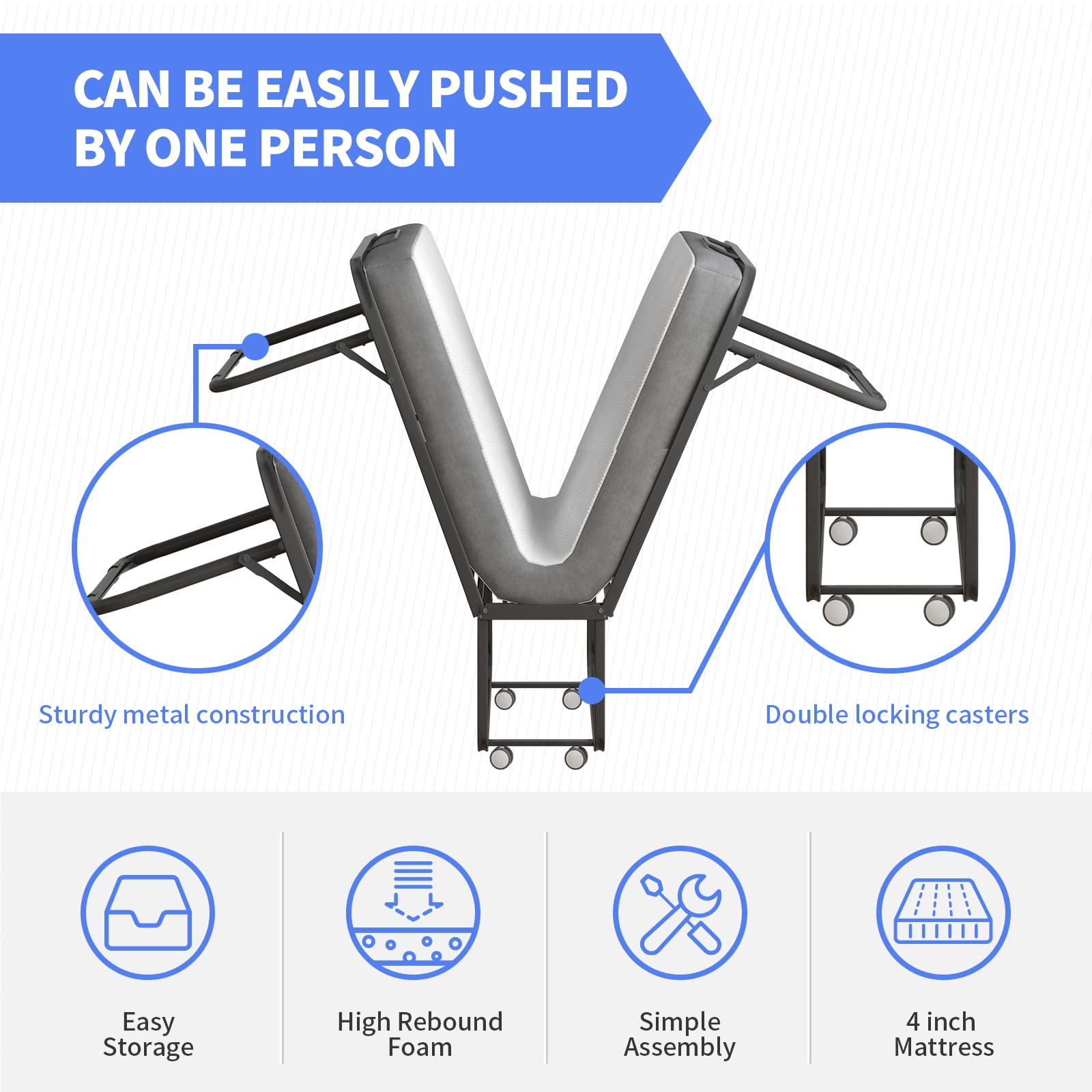 ZAFLY Folding Bed with 4 Inch Folding Mattress,Twin Size Portable
