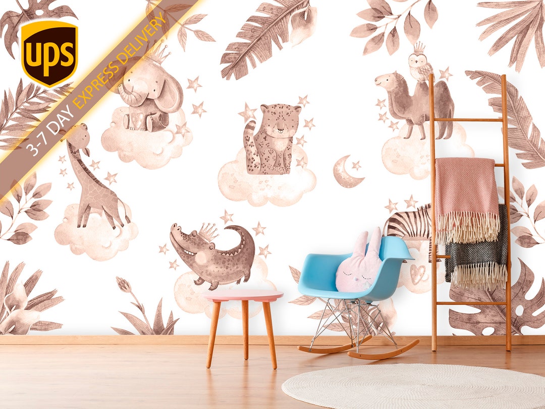 Africa Animals Wallpaper Baby Room Removable Tropical Wall Etsy