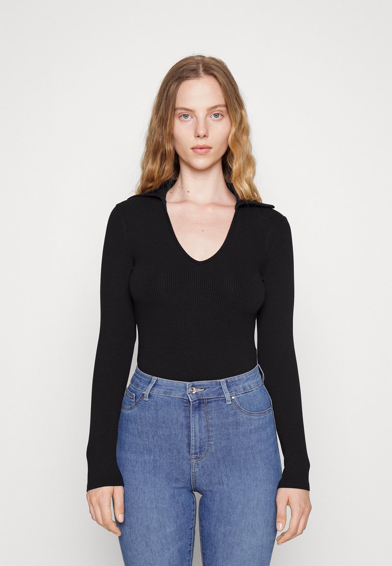 Glamorous V NECK COLLARED THONG BODYSUIT WITH LONG SLEEVES Long