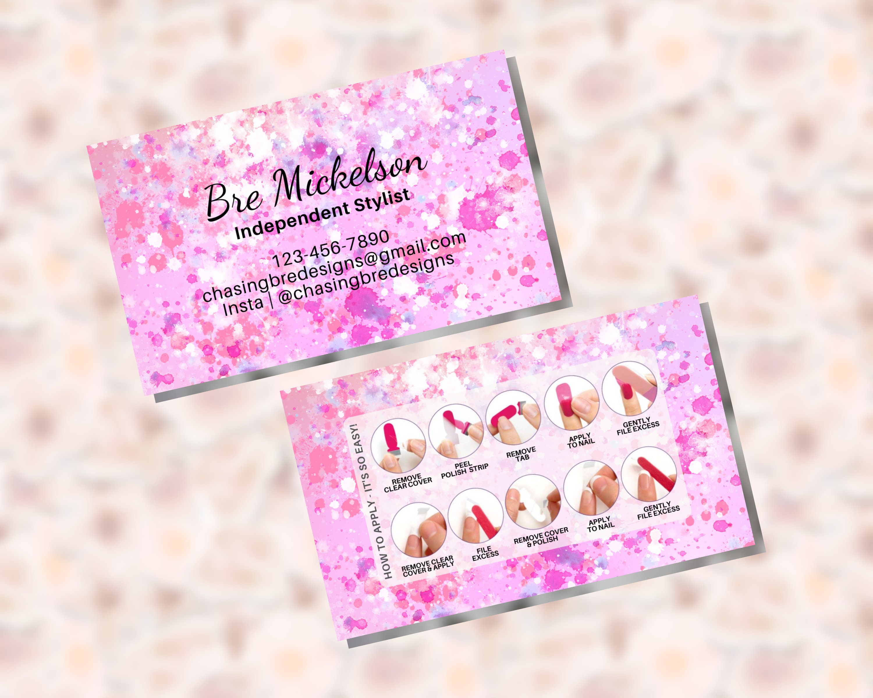 Nail Stylist Business Card Template Nail Technician Business Etsy Canada Business Card Nail Designs now you can create beautiful, professional, printable nail business card templates without spending time and money on a. create a stylish business card for a manicurist and pedicurist for free. nail your artful introduction and score new clients with a polished set of nail design business cards made with professional templates from canva. our nail business. Business Card Nail Designs.