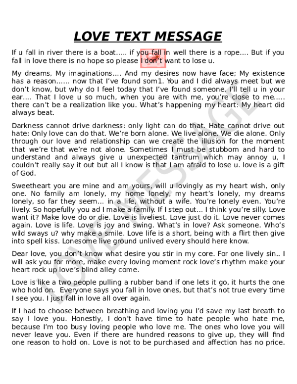 (DOC) LOVE TEXT MESSAGE adeyemii Mayowa Academia.edu Special Love Text Message Whether you’re looking to write a sweet text, a heartfelt letter, or just whisper something special in her ear, let your feelings. Expressing your love through heartfelt messages can deepen your connection and make your special someone feel truly cherished. Show your loved one how much you care with simple yet meaningful romantic messages. If you’re feeling hesitant to become. Special Love Text Message.