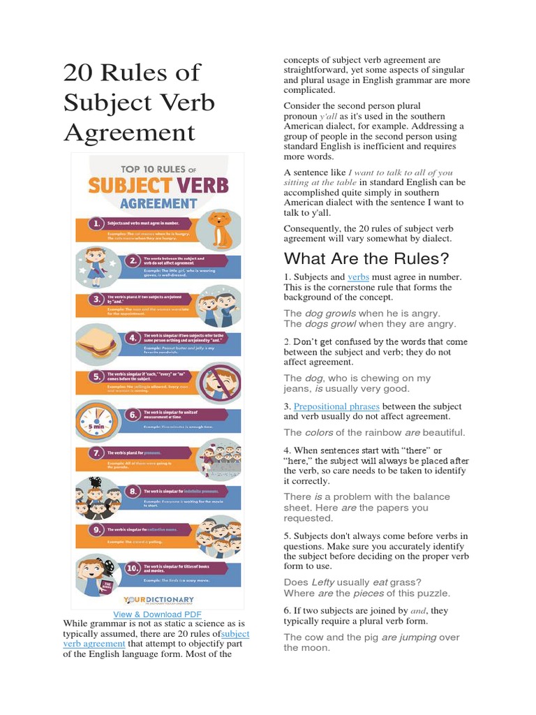 20 Rules of Subject Verb Agreement Grammatical Number English Language