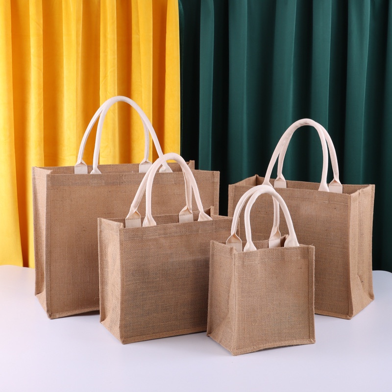 Muji Friendly Reusable Jute Bag Burlap Tote Bags Natural Linen Bags