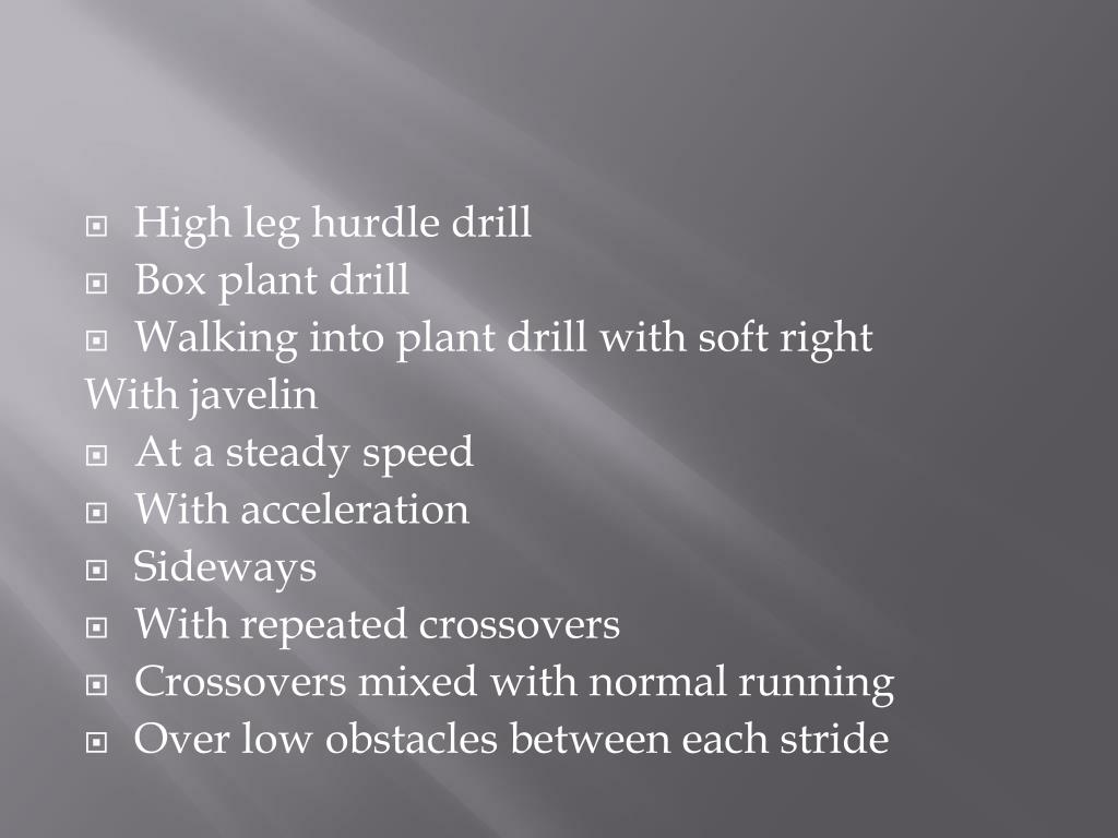 PPT Javelin PowerPoint Presentation, free download ID6808574 Javelin Crossover Drills Click here for javelin training programs built for athletes and coaches of all ages and skill levels in track and field, designed by world class and. Here is how to develop a simple full approach javelin throw. What is the crossover stride? These videos provide a general overview of the crossover including the reasons for it, how to do it. Javelin Crossover Drills.