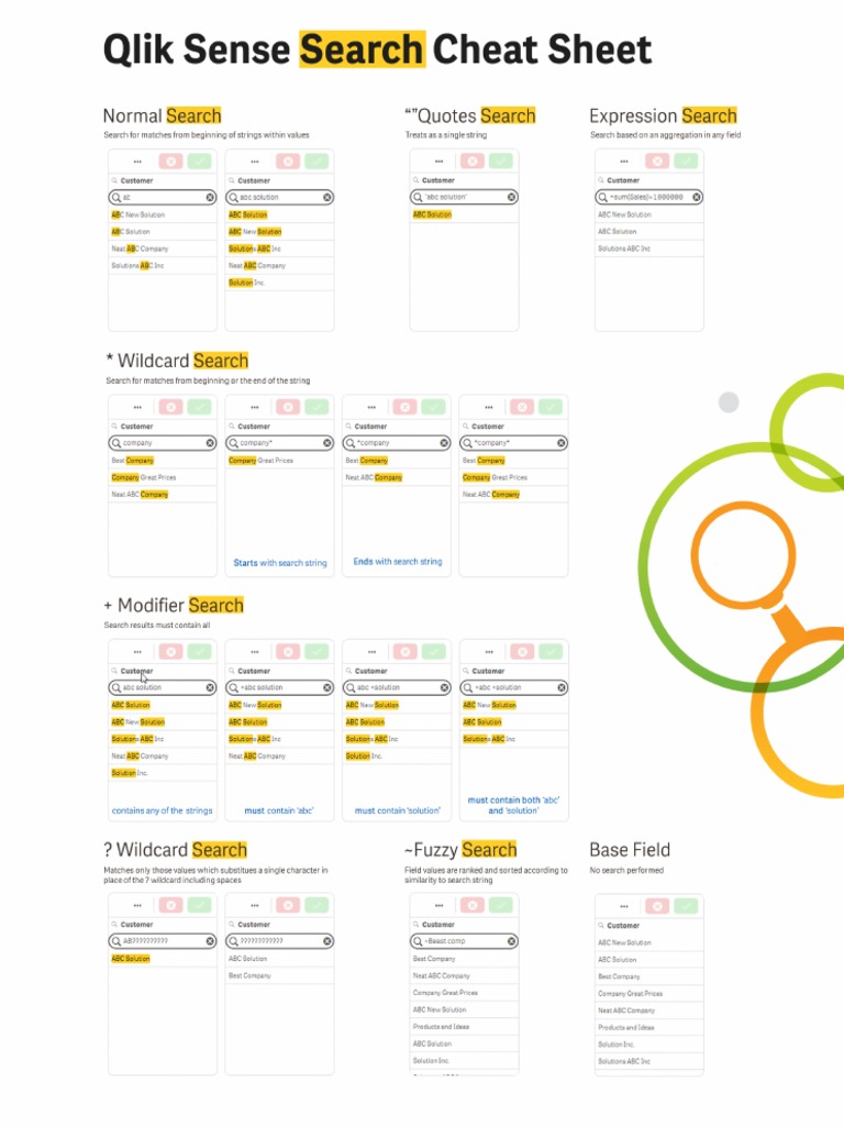 Qlik Sense Search Cheat Sheet PDF