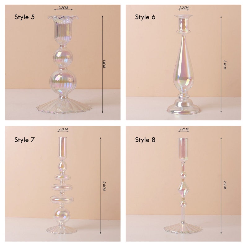 Iridescent Candle Holder Vase Set Tall Glass Candle Stick Etsy Tall Glass Candle Sticks Glass candlestick holders set 6pcs, clear taper candle holders bulk, crystal tall candle holder for diy wedding, festival, party, thanksgiving. 4 tall glass candlestick holders 2 pcs clear glass taper candle holder set crystal candle holders for table centerpiece, candle sticks. Choose from same day delivery, drive up or order pickup plus free. Check out our tall glass candlestick selection. Tall Glass Candle Sticks.
