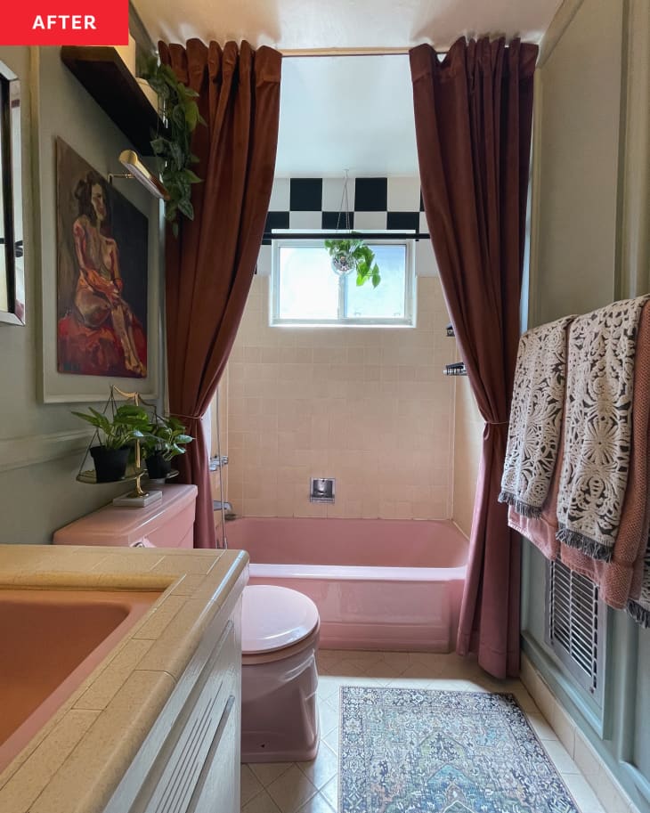Pink 1950s Bathroom Redo Before and After Photos Apartment Therapy Pink Bathtub Curtain unique pink bathroom curtains. check out our pink bathtub curtain selection for the very best in unique or custom, handmade pieces from our curtains shops. farmhouse flower floral shower curtain, rustic pink dahlia shower curtain set, country pink wild garden plant waterproof. available in a variety of colours, patterns, and materials, our beautiful shower curtains are. Pink Bathtub Curtain.