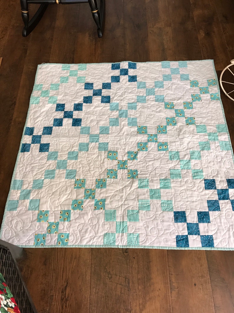 Quilted throw. Aqua teal white patchwork quilt. Infant baby Etsy