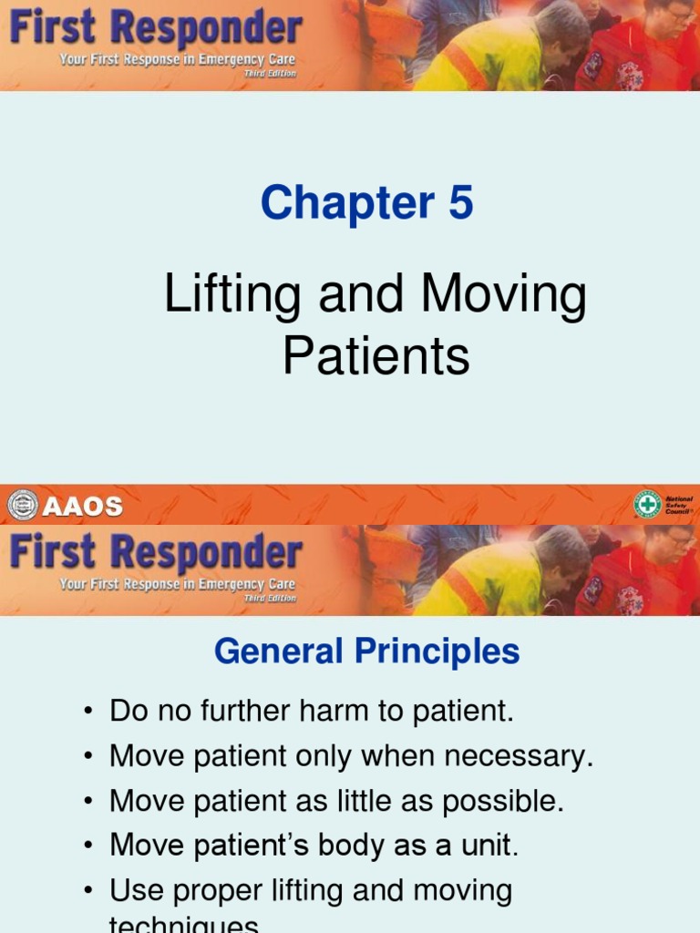 Chp 8 Lifting and Moving Patients Chp 8 Lifting and Moving Patients Lifting And Moving Patients Chapter 8 Lifting and moving patients flashcards from jordan robins's class online, or in brainscape's iphone or android app. If an injured patient needs to be moved but is not in immediate danger from fire or building collapse, you should first: Describe specific situations in which a nonurgent move may be necessary to move a patient; Moving patient should be done in. Lifting And Moving Patients Chapter 8.