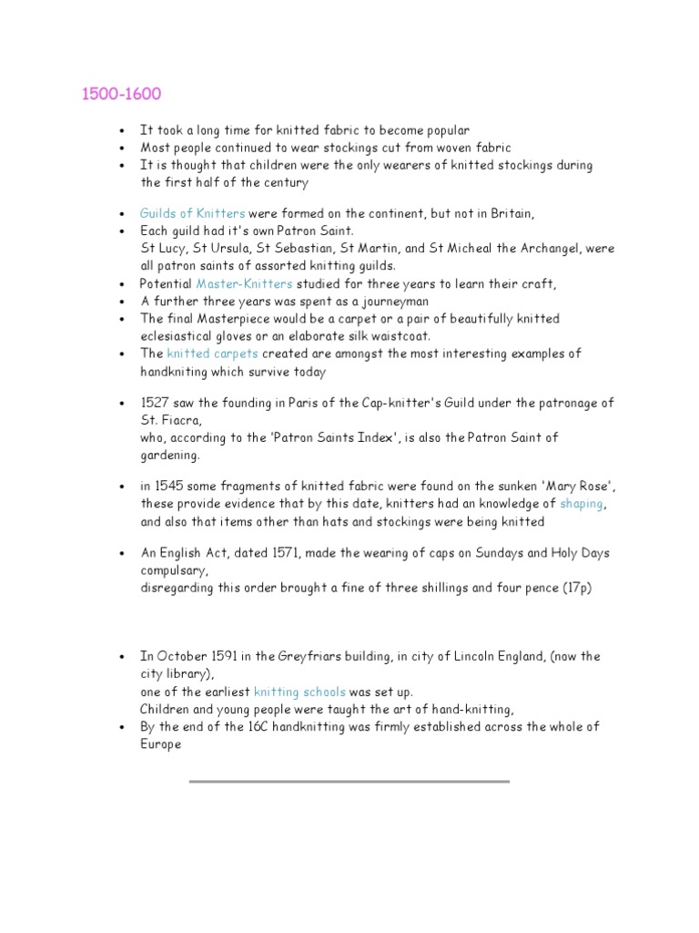 (DOCX) Knitting Timeline DOKUMEN.TIPS Knitting History Timeline the history of knitting dates back to ancient egypt. 1855 sketch of a shepherd knitting, while watching his flock. The exact origins of knitting are somewhat elusive, with no definitive evidence pinpointing when or. the exact origins of knitting are unknown, but it is believed to have originated in the middle east or ancient egypt around 1000. Knitting History Timeline.