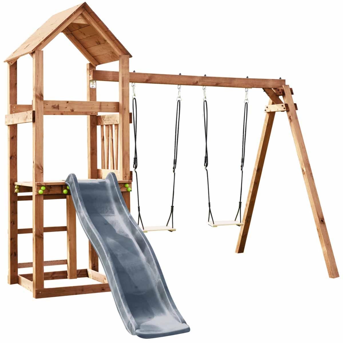 Portique en bois avec balançoire balancelle et toboggan Nigel Toboggan Avec Balancoire Bois Des options sécurisées et amusantes pour les moments de. Nos aires de jeux avec toboggan sont disponibles avec plusieurs équipements : Chez trigano store, nous vous proposons une variété de balançoires, que ce soit en bois ou en métal, pour répondre à vos préférences. Transformez votre jardin en un terrain de jeu captivant avec notre portique doté d'un toboggan intégré.. Toboggan Avec Balancoire Bois.