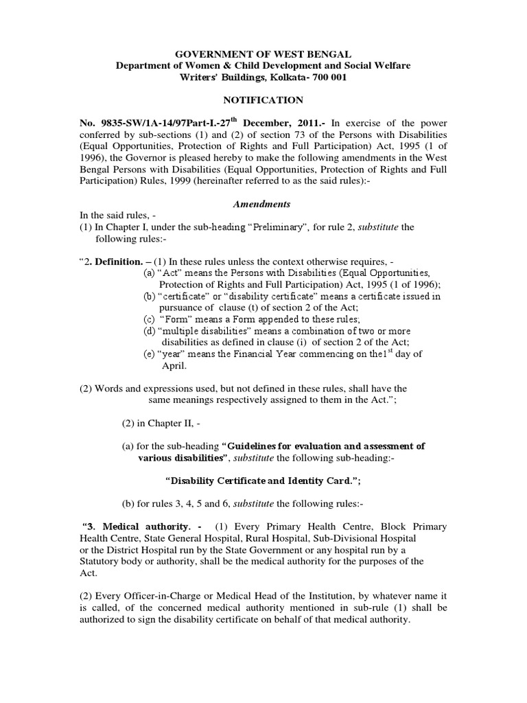 Disability Certificate Wb Visual Impairment Disability