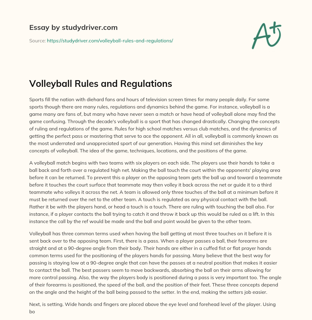 Volleyball Rules and Regulations Free Essay Example