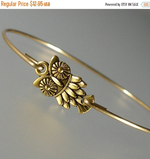 MOTHERS DAY SALE Gold Owl Bangle Bracelet Gold by LilyAndLouise