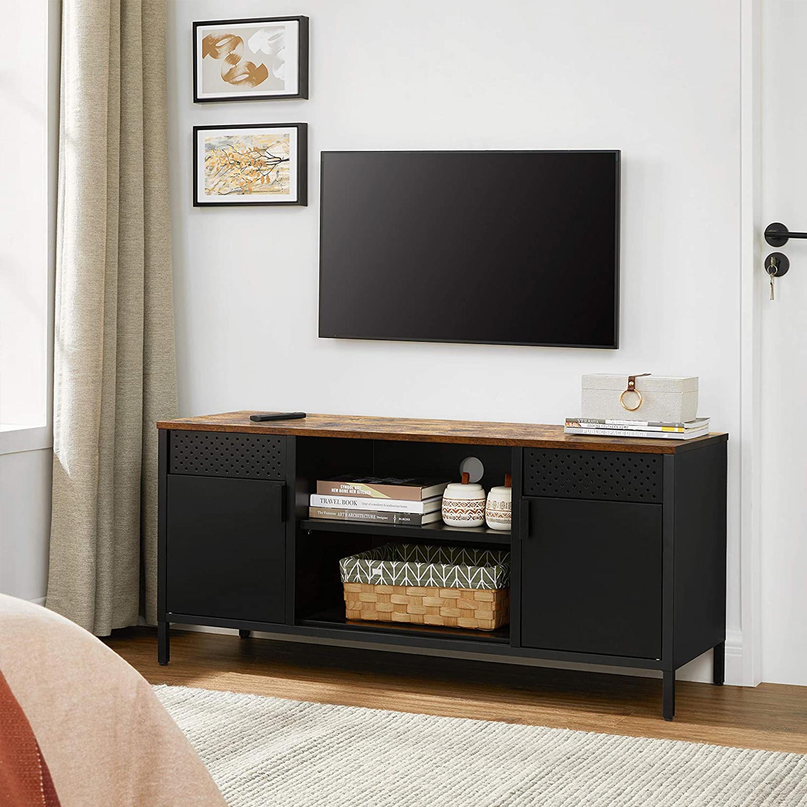 Tv Black Console The black oak veneer and black matte top finish bring a modern and elegant aesthetic to the room and. this media console is designed to accommodate tvs up to 85 inches, adding both style and functionality to your home. Check each product page for other buying options. looking for a modern and elegant tv stand for your living. Tv Black Console.