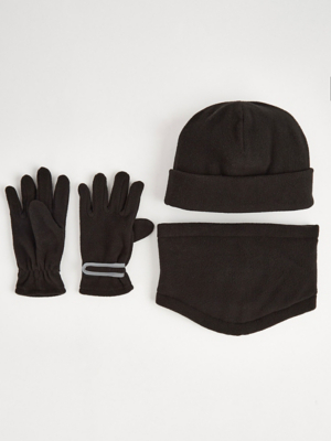 Black Fleece Hat Snood and Gloves 3 Piece Set Kids at ASDA