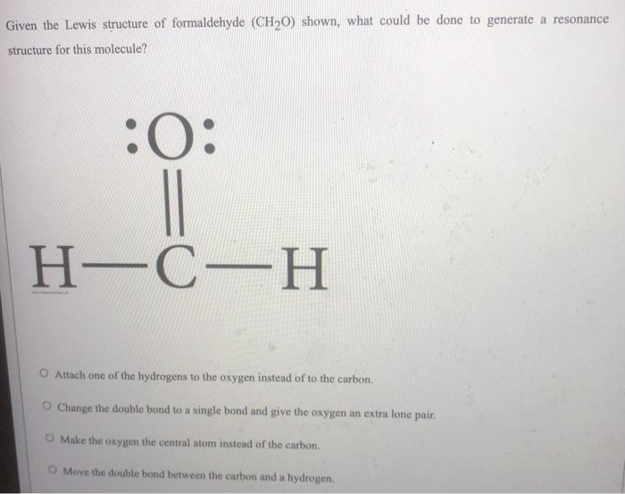 SOLVED A Lewis structure for formaldehyde is shown below This Formaldehyde Lewis Structure Find out its resonance structures, hybridization, and. Learn how to draw the lewis structure of formaldehyde (ch2o), a simple aldehyde, and understand its bonding, polarity, and molecular geometry. Learn how to draw the lewis structure of formaldehyde (ch2o), a simple aldehyde, with steps, molecular geometry, hybridization, and polarity. Formaldehyde (hcho, ch 2 o, methanal) molecule lewis structure. Formaldehyde has a. Formaldehyde Lewis Structure.