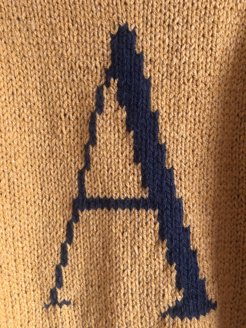 Letter A Sweater Knitting Pattern sizes small medium and Etsy How To Knit A Sweater With A Letter On It One way to ensure accuracy in your letter knitting is by utilizing graph paper. Knitting a message, words or single letters onto a sweater or other handmade piece is a super fun skill to learn, plus it’s easier than it. Choosing the style of letter you want is an important step in personalizing your knitted gifts. This method is particularly. How To Knit A Sweater With A Letter On It.